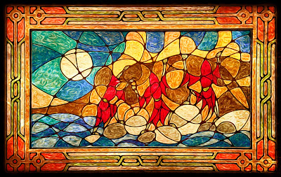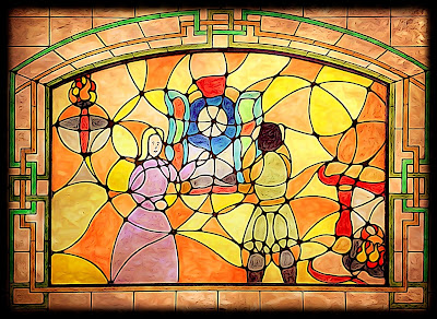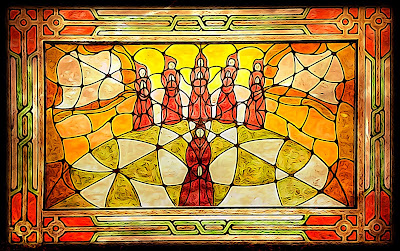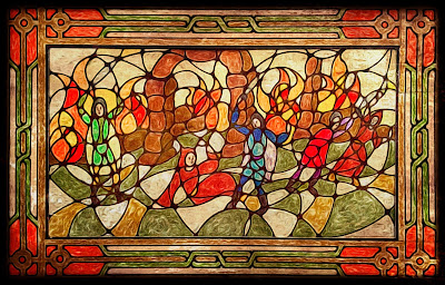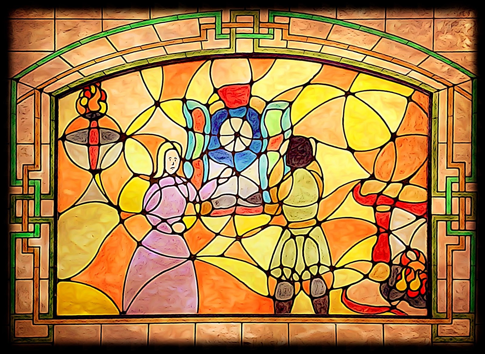 pueden verse luces, a través de las ventanas de la iglesia, acompañados de