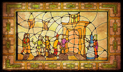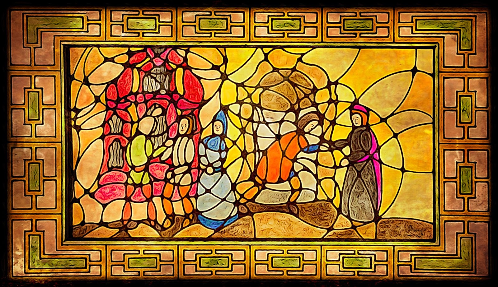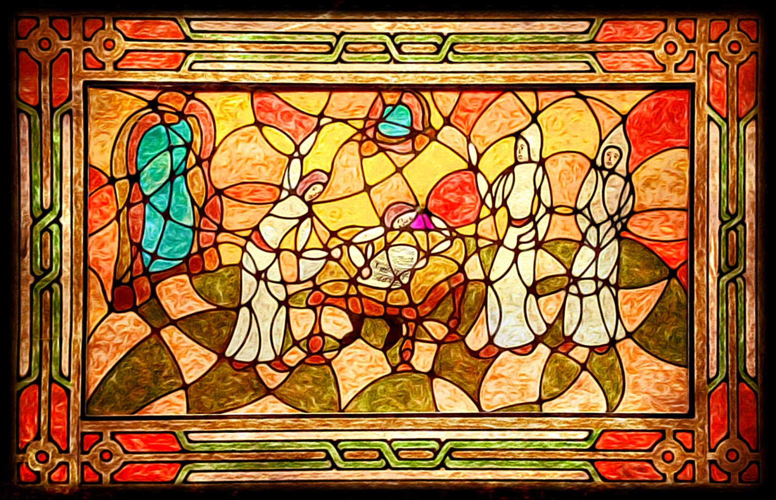 pueden verse luces, a través de las ventanas de la iglesia, acompañados de