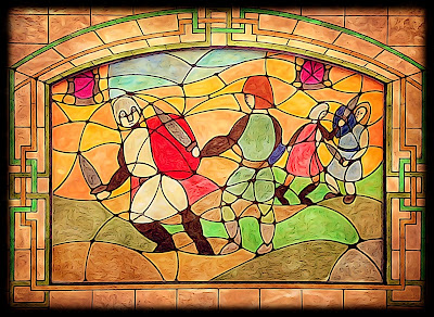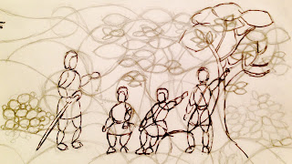 entre las distintas tiendas, el Conde de Gómora encuentra un juglar que entona